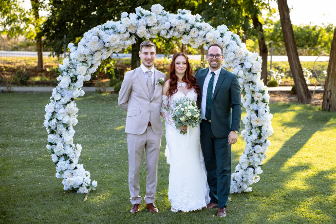 Profi csapat állt fel, akik tökéletesen alkalmazkodtak a körülményekhez és mindent úgy hoztak le, hogy nem is lehetett volna ennél tökéletesebb. Patrik mindenre felkészült, határozott, végtelenül kedves, ezzel minden vendégünk, különösen az örömanyák szívébe hamar belopta magát. Ha bármikor újra házasodnánk (persze csak egymással), újra Patrikot választanánk!